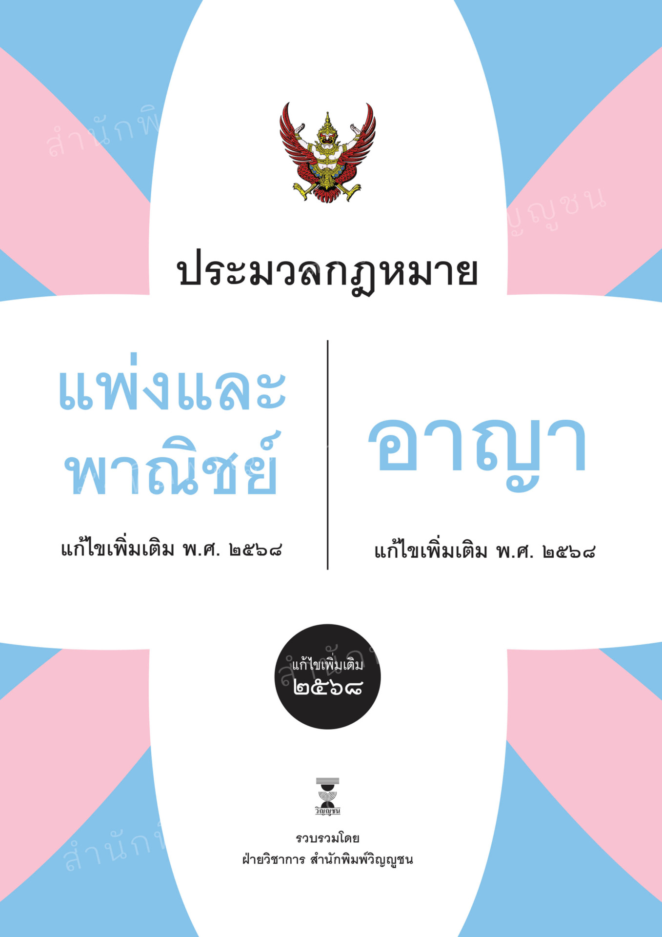 📍 พิมพ์ มกราคม 2569 : แก้ไขประมวลกฎหมายอาญา พระราชบัญญัติแก้ไขเพิ่มเติมประมวลกฎหมายอาญา (ฉบับที่ 30) พ.ศ. 2568 โดยแก้ไขเพิ่มเติม มาตรา 1 (18), เพิ่มเติม มาตรา 1 (19), ยกเลิก วรรคสอง วรรคสาม วรรคสี่ ของมาตรา 278, ยกเลิก วรรคสี่ วรรคห้า วรรคหก วรรคเจ็ด ของมาตรา 279, แก้ไขเพิ่มเติม มาตรา 281, เพิ่มเติม มาตรา 284/1 มาตรา 284/3 มาตรา 284/4,อ แก้ไขเพิ่มเติม มาตรา 397